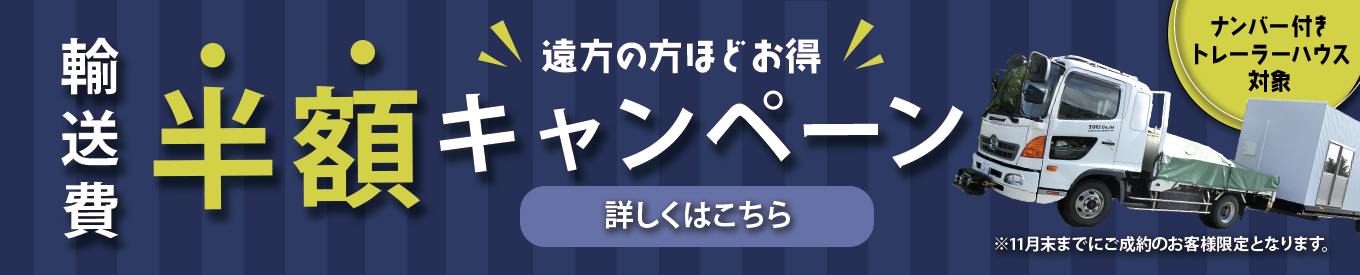 【ナンバー付きトレーラーハウス限定】輸送費半額キャンペーンを開始しました!