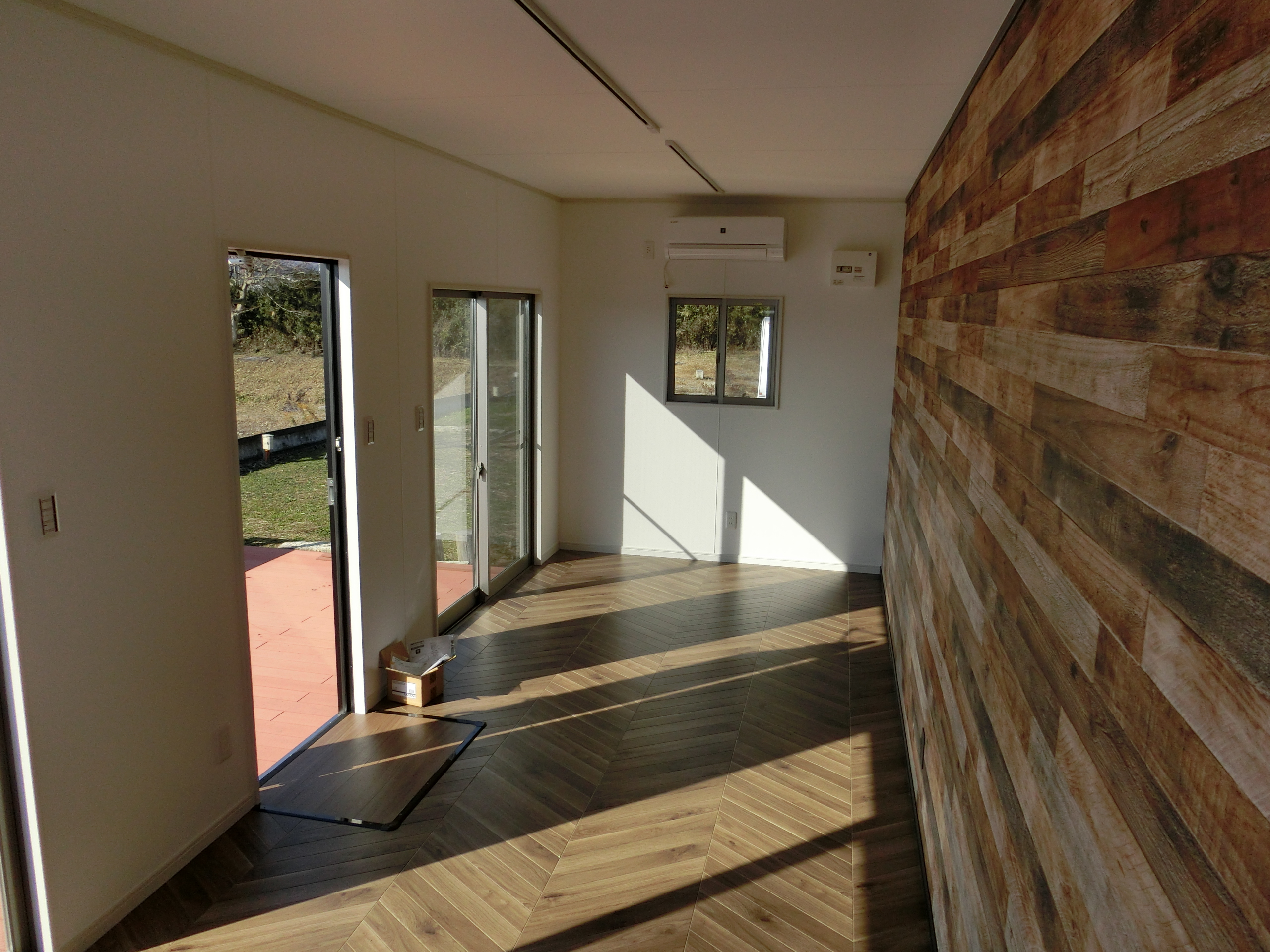 クラブ650をベースに断熱材はポリスチレンフォームに変更し、快適な時間を過ごせるようにしております。もちろん、窓はペアガラス(室内側樹脂サッシ)、掃き出し窓を追加し、眺めも最高です。エントランスドアも木目調タイプに変更。室内クロスもアクセントクロスを入れております。