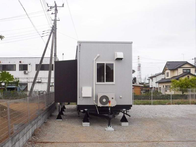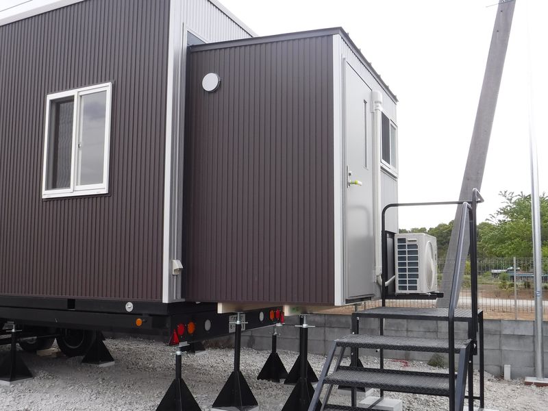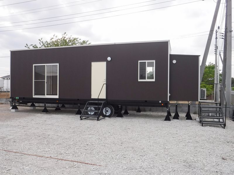 | 装 備 | 標準仕様に加えトイレ、ミニキッチン、スライドアウトを追加。スライドアウトは室内外から利用できるようカスタマイズ済み。 |