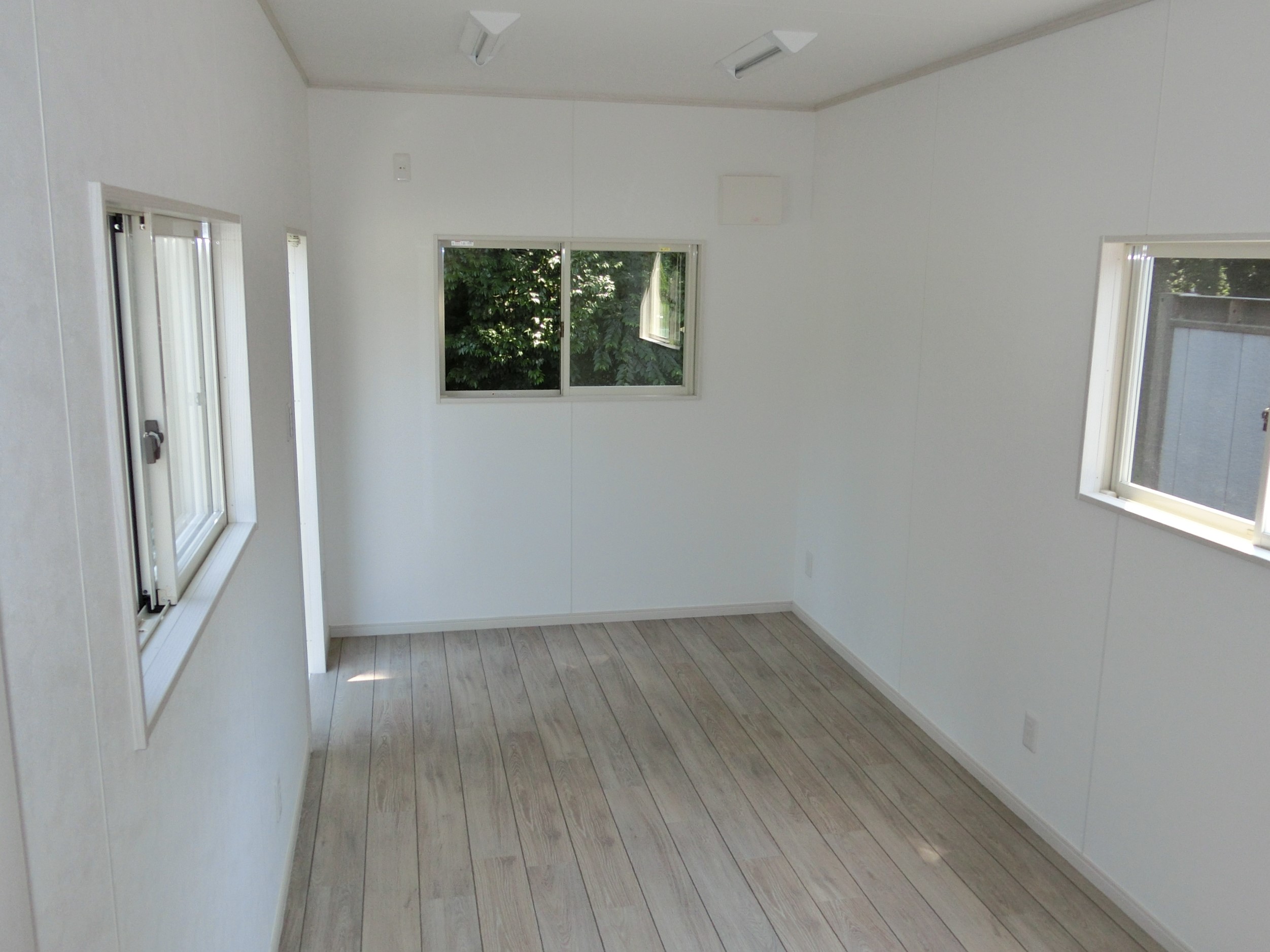 装 備 各部照明・コンセント・トイレ(ウォシュレット付き)・1ナンバー登録 ※継続車検時の本体脱着方法は実用新案取得済みです。 ※タイルカーペット仕上げ済み