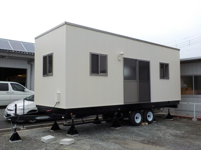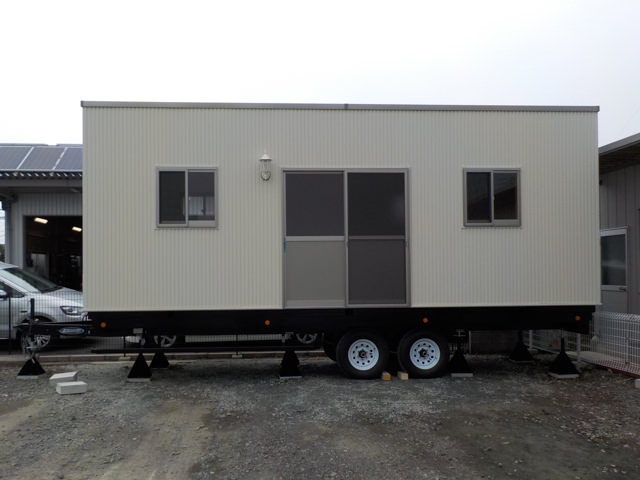 当社の取扱トレーラーハウスのうち最も小型なモデルとなり、スモールオフィスなどに最適です。ナンバー付きなので置き場所を選びません。チップアウト(オプション)により小型トレーラーながらお部屋を広くお使いいただけます。