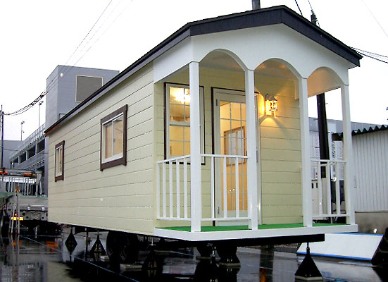 大人気のデッキ付きトレーラーハウス。スケルトンモデル(オプション装備なし)お客様の用途に合わせカスタマイズのしやすいモデルとなっております。事務所・店舗等にご利用いただく事が多いです。