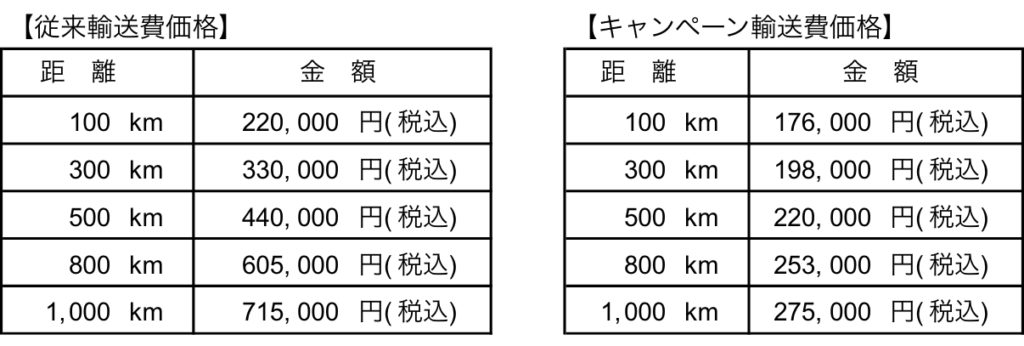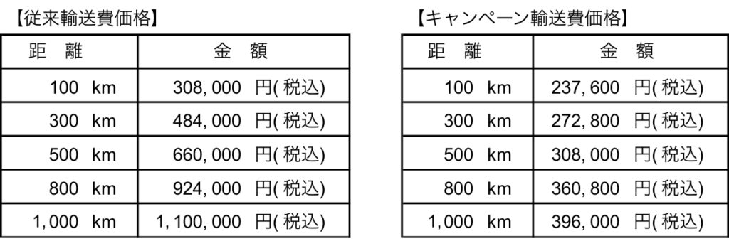 輸送費割引キャンペーン!遠方のお客様ほどお得なキャンペーンです。